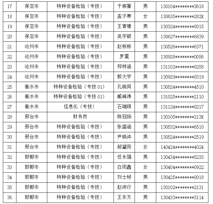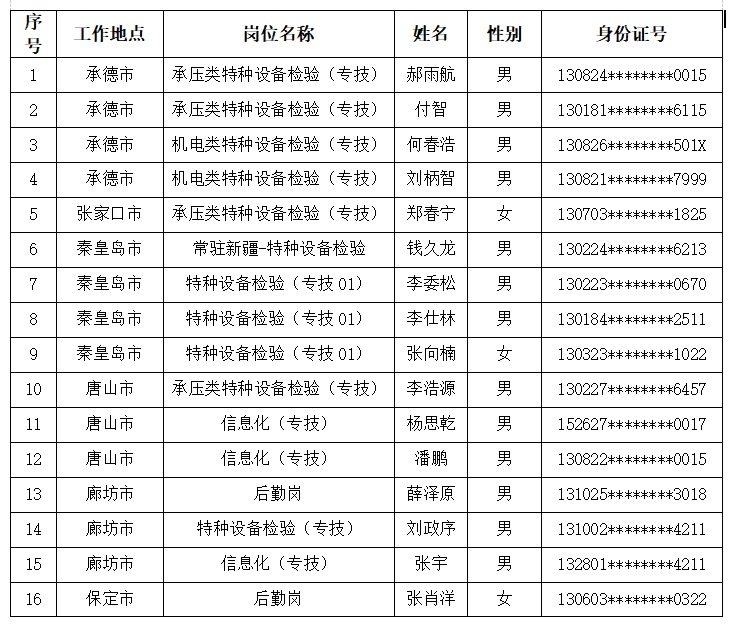 受委托为河北省特种设备监督检验研究院招聘人才拟聘用人员公示